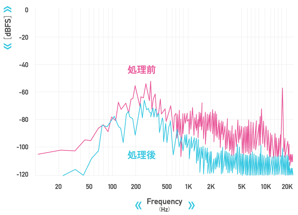 エネデュース導入前後の振動・騒音変化の様子 食品工場(東京都)